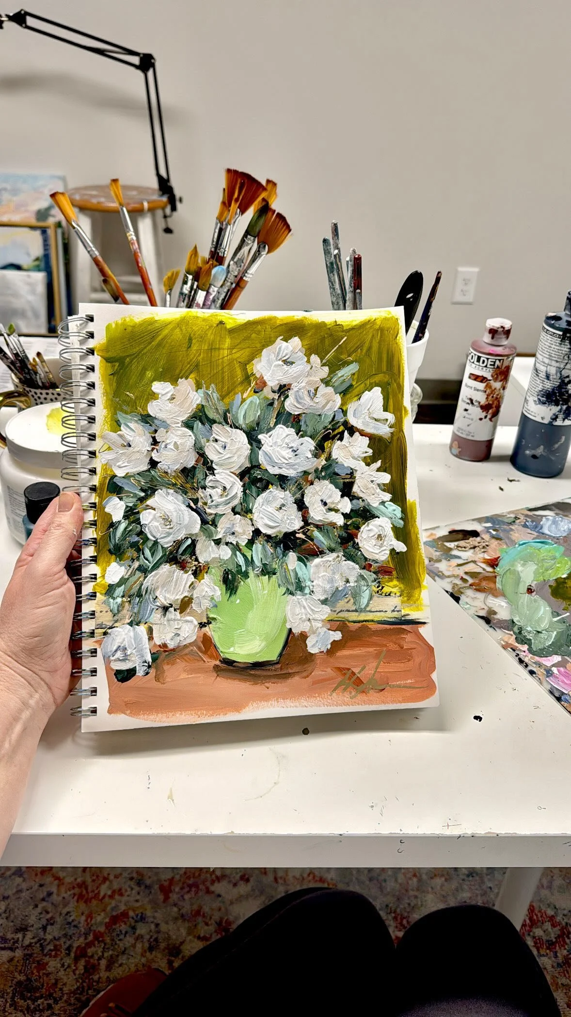 Each painting begins with words of hope and encouragement tucked beneath the surface. Layer by layer, those words take shape in color and texture, building a story your home can feel - one that reminds you of beauty, growth & the quiet strength beneath it all.