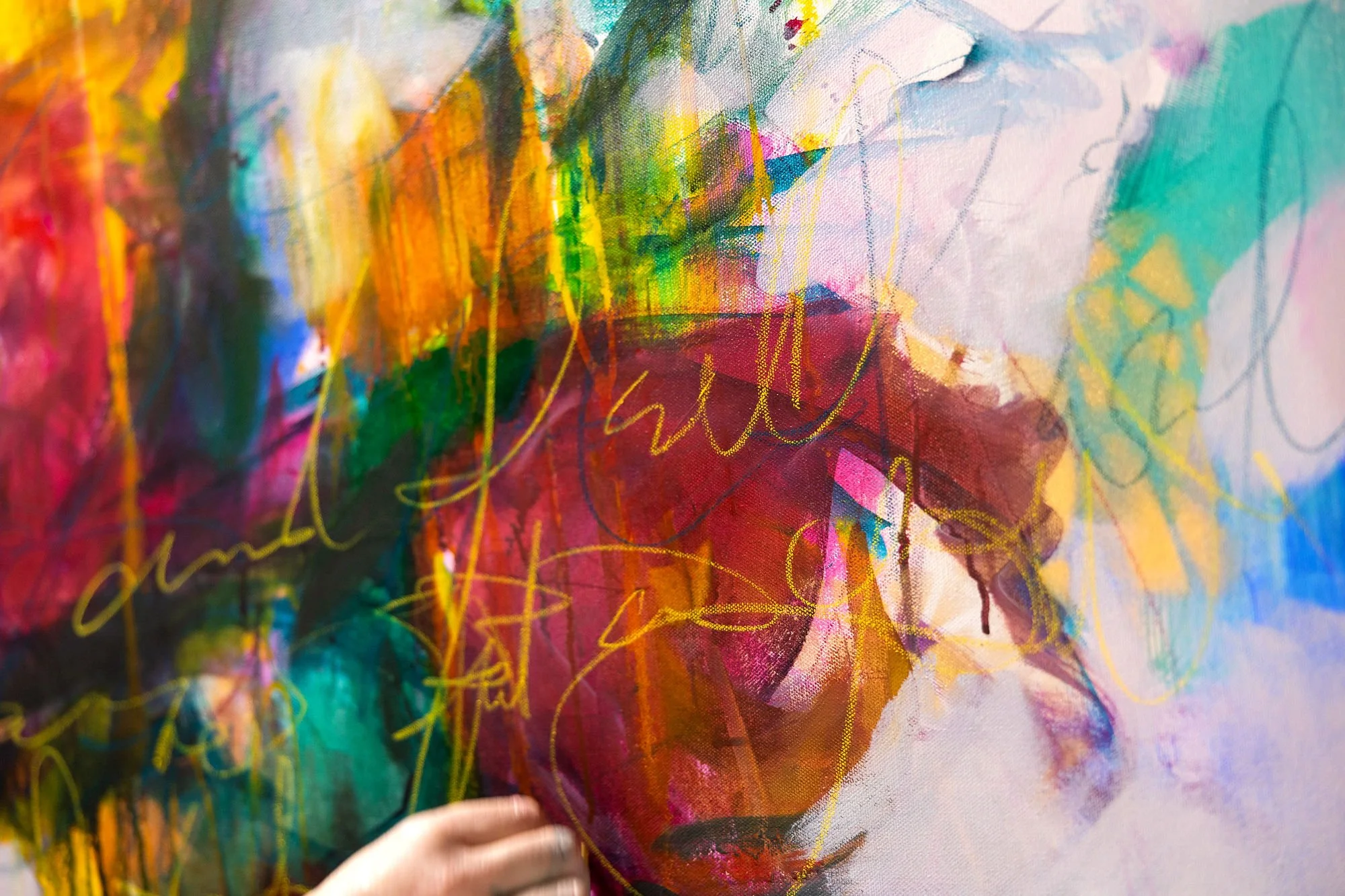 Each painting begins with words of hope and encouragement tucked beneath the surface. Layer by layer, those words take shape in color and texture, building a story your home can feel - one that reminds you of beauty, growth & the quiet strength beneath it all.